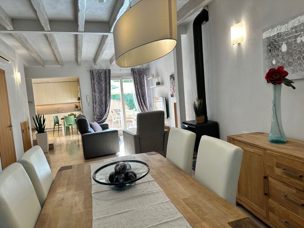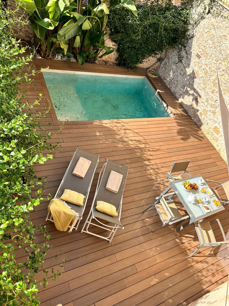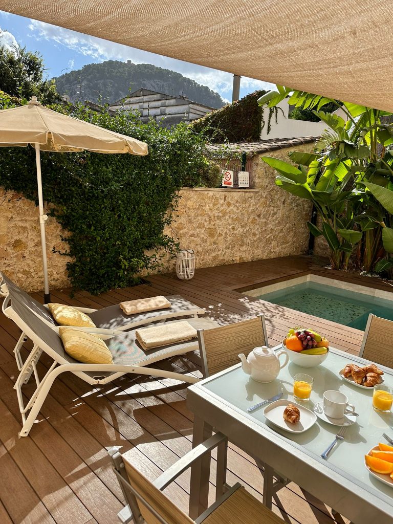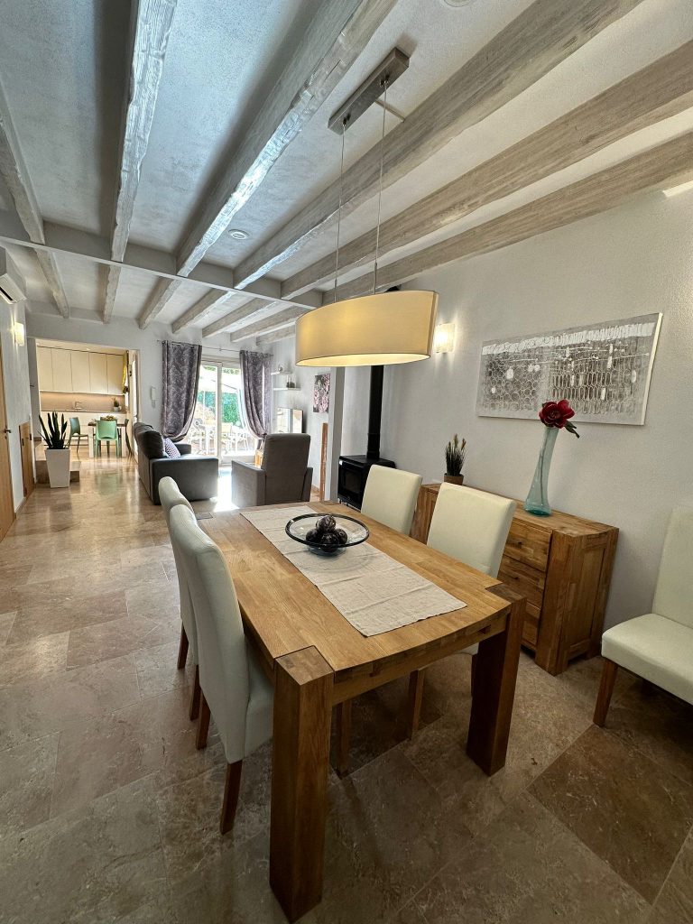 Wonderful luxury townhouse with private pool area to rent in Pollença, Mallorca. It is set in a very quiet street, but at the same time at a few minutes walk to the town center and its main streets. The lovely dining and living room is open to the modern and comfortable kitchen. The living room is also open to the beautiful terrace with private swimming pool, furnitured with a table and clairs to have lunch or dinner and sunloungers. There is also a bathroom downstairs. Upstairs there are two lovely decorated bedrooms and another bathroom. One of the bedrooms is open to a terrace that can be used as a solarium. A lovely place to relax and enjoy the island.